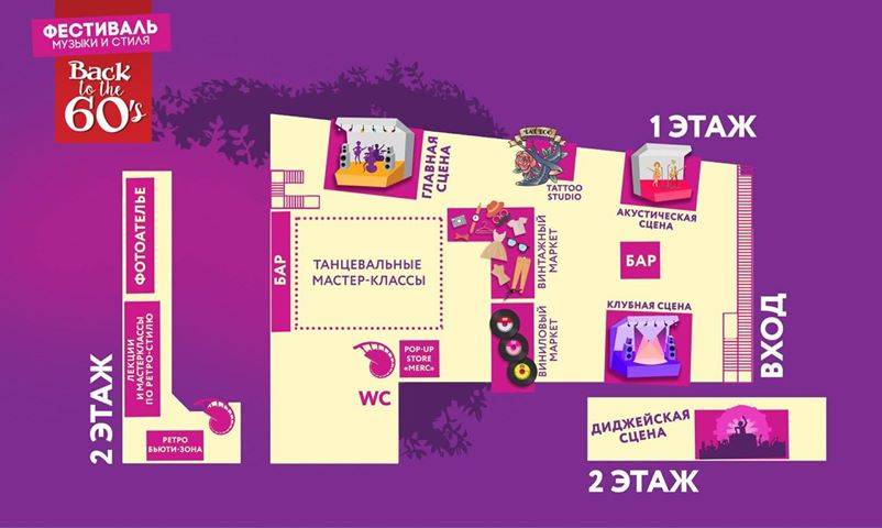 В течение всего дня гости фестиваля смогут провести время на нескольких развлекательных площадках. Принарядиться на маркете винтажной одежды; научиться танцевать рок-н-рол и ска на специальных мастер-классах, послушать тематические сеты от ведущих ди-джеев играющих музыку 60-х; сделать стильную прическу; поиграть в настольные игры, и даже унести музыку с собой, купив антикварную пластинку на виниловом маркете.