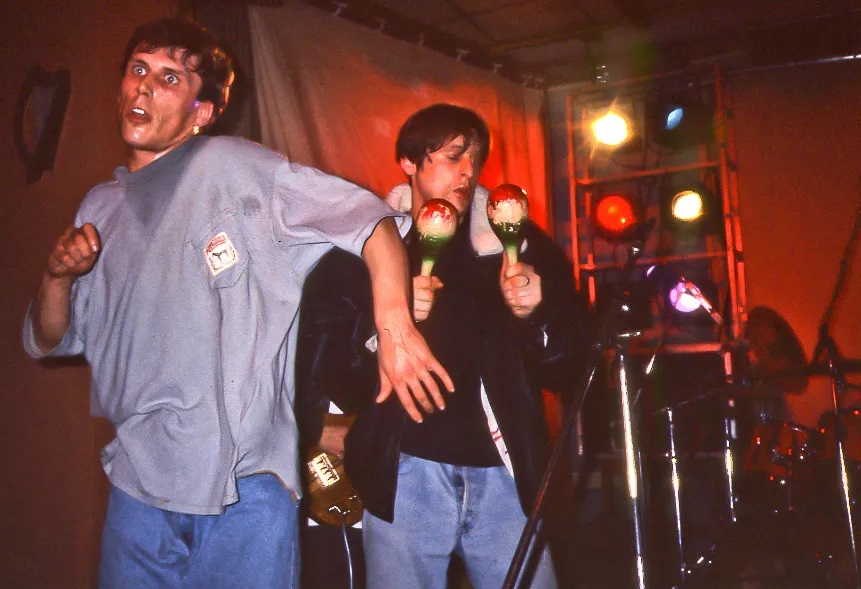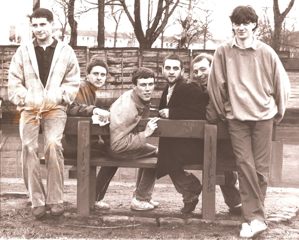 1987 — Промо-фото Happy Mondays для вечеринки в Олдершот графства Хэмпшир. Источник |