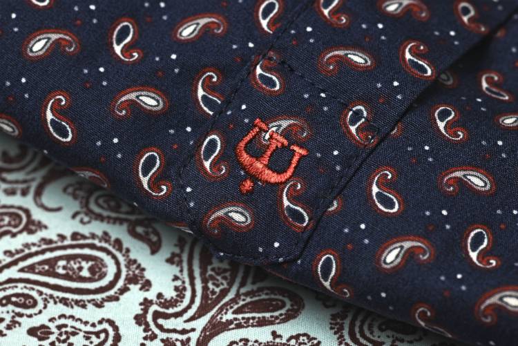 Актуальный во все времена рубашечный узор, pasley – знаковый атрибут денди look, особенно часто украшающий эффектные сорочки в пижонском стиле. В зависимости от цвета, частоты и размера, – пейсли сочетается с широкой палитрой предметов верхнего и брючного гардероба – от строгой классики и выдержанного smart-casual стиля до тертого денима и навороченной кожаной куртки. Если вы выбрали рубашку с орнаментом pasley, то особым шиком в дополнение к ней станет узкий галстук с идентичным узором.