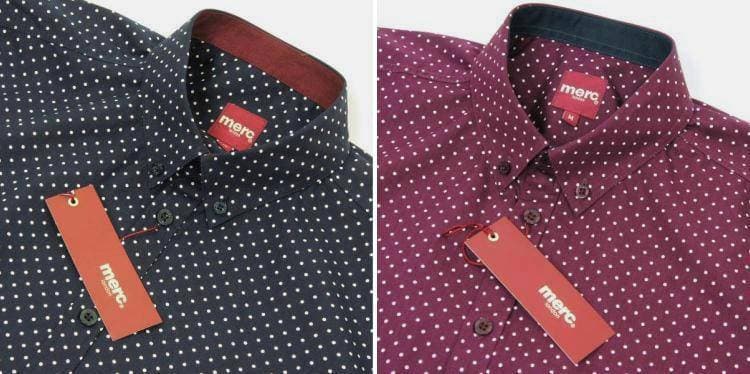 В ассортименте Merc формальные рубашки встречаются крайне редко: в строгих луках их заменяют стилизованные под классику однотонные модели casual стиля. Они полностью соответствуют деловому этикету, однако могут быть использованы и в менее обязывающем образе.