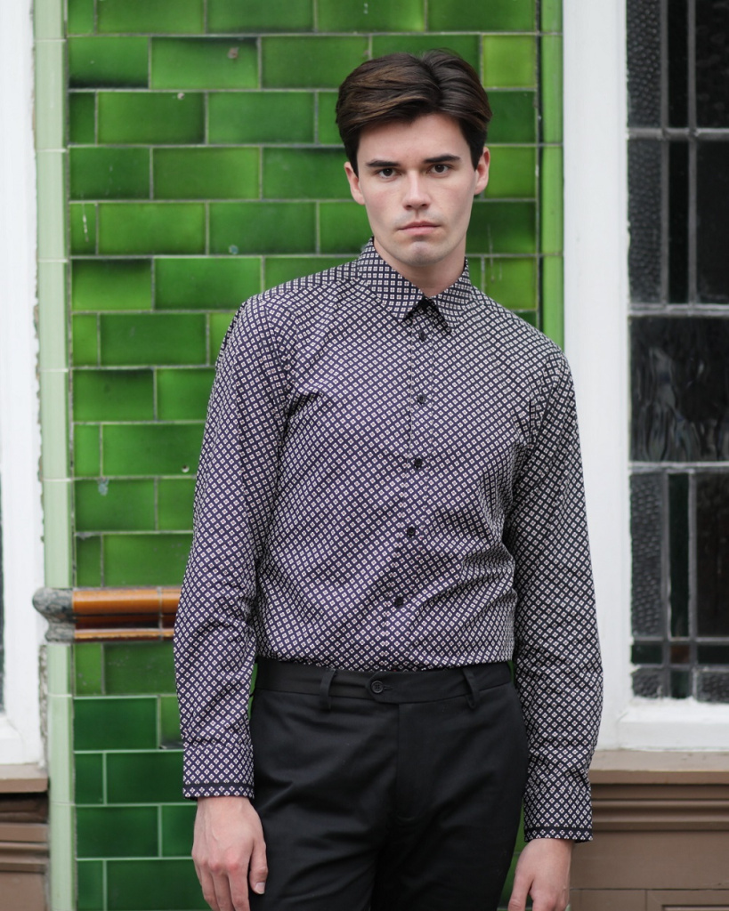 Узоры, изображающие правильные геометрические формы, будь то треугольник, объемный кристалл или квадраты, – отсылка к модернистскому стилю эпохи 60-х и его сегодняшнему прочтению в духе современного ретро. Такие рубашки хорошо приживаются в большом разнообразии луков, легко комбинируясь со стеганой укороченной курткой, саржевым пальто, чиносами, а также предметами более официального гардероба.