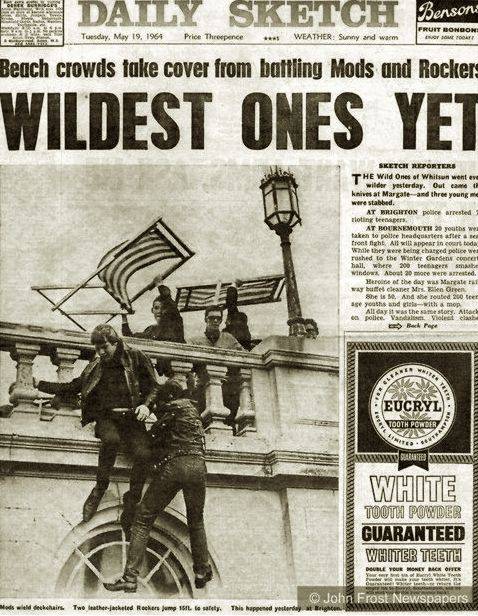 Британская пресса о столкновениях модов и рокеров в Брайтоне, Англия, 1964