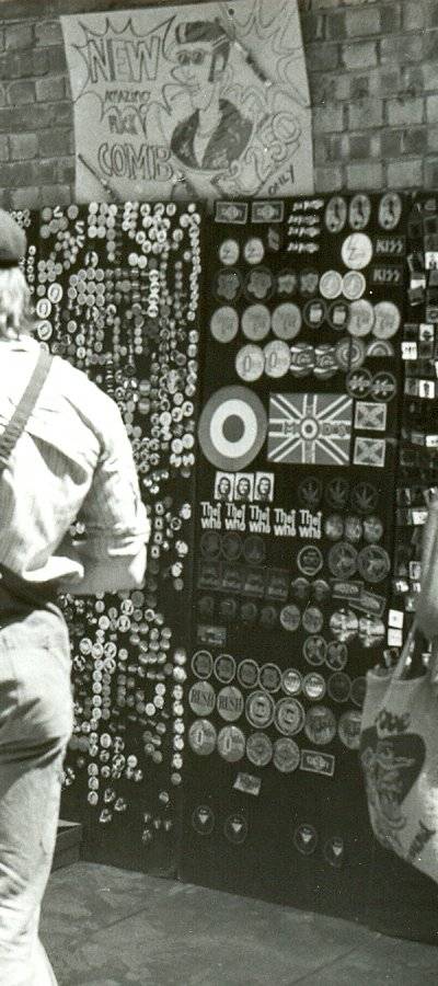 Традиционные модовские патчи и значки, без которых невозможно представить фиштейл парки и Харрингтоны участников исконного движа, Карнаби стрит, Лондон, 1979. Источник |