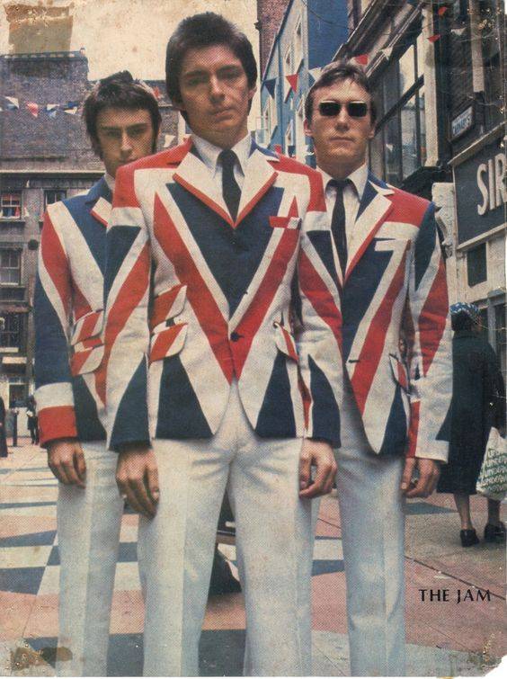 The Jam позируют на Карнаби стрит в знаменитых Union Jack Jackets, Лондон, конец 70-х. Источник |