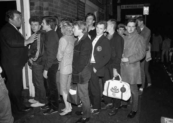 Очередь на входе в клуб Wigan Casino, Англия, вторая половина 70-х. Источник |