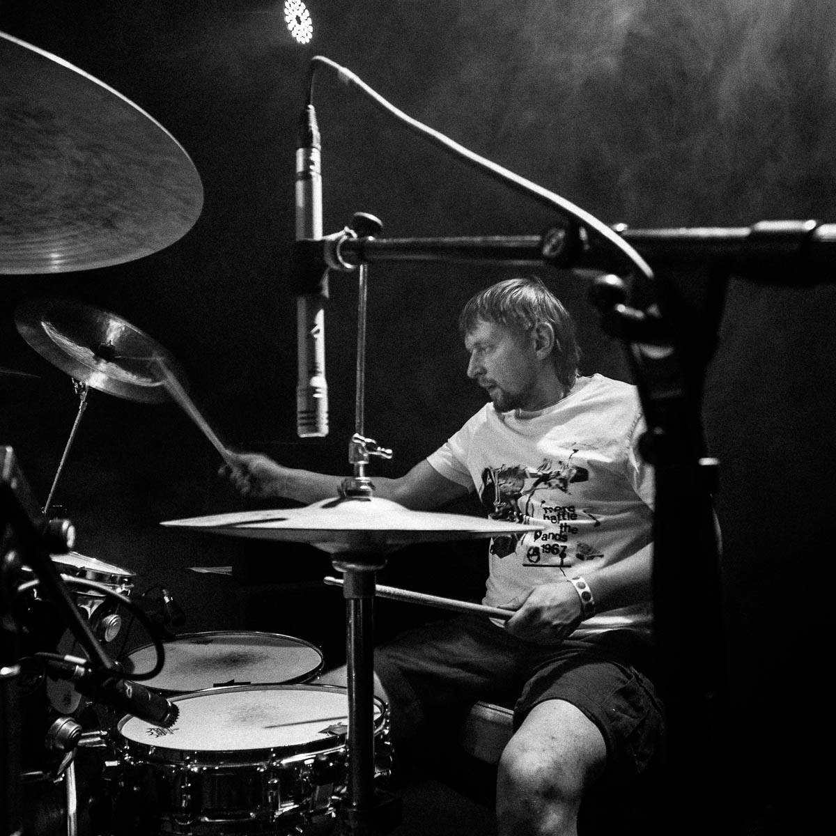 Барабанщик Михаил «Базед» Сигодин в футболке Merc, Москва, клуб Арена, 31.10.2015