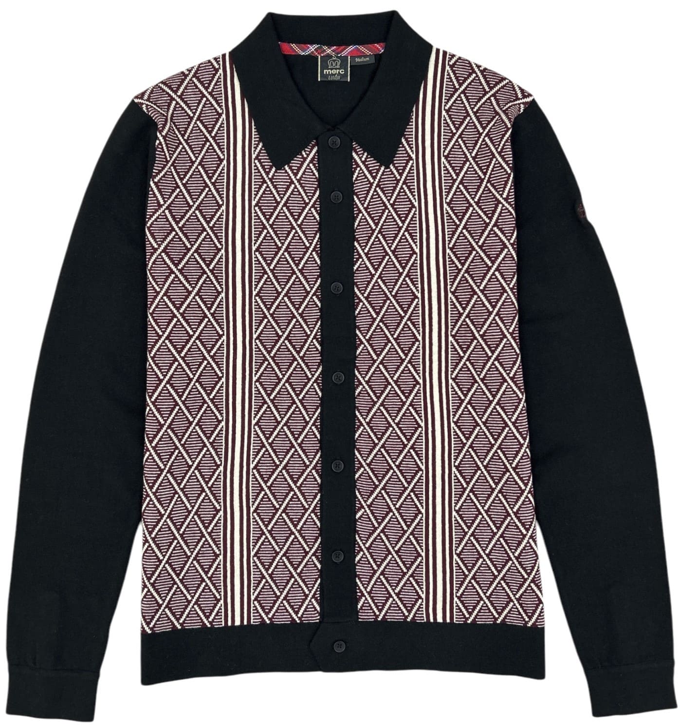 Названный в честь ливерпульского The Cavern Club — культового центра британской музыкальной сцены 1960-х и сердца мерсибита, «Каверн» передает неповторимое очарование ретро-эстетики с оттенками мод-гардероба и ямайского rudeboy. Модель выполнена из плотного трикотажа с фактурным жаккардовым узором, богатым контрастами и сочетающим ромбы и знаковую спортивную полоску. Однотонные спинка и рукава строгой черной расцветки сохраняют визуальный баланс и органично оттеняют орнамент. Классический отложной воротник со слегка удлинёнными уголками в духе mod point collar и полная застёжка на тональные пуговицы дополнены характерными для английских вязаных поло 50-60-х акцентами — фигурным низом планки и рубашечными манжетами, что сообщает модели аккуратный, почти портновский силуэт, подчеркивает её самобытность и обеспечивает четкую посадку. Еще одна знаковая деталь Cavern, отсылающая к моде середины прошлого века, — скрытая застёжка у горловины, придуманная для того, чтобы планка не расходилась, воротник лежал безупречно, а силуэт сохранял чистый и аккуратный вид. Образ завершает наш фирменный лого Корона, тщательно вышитый на рукаве. [Цвет производителя — black]