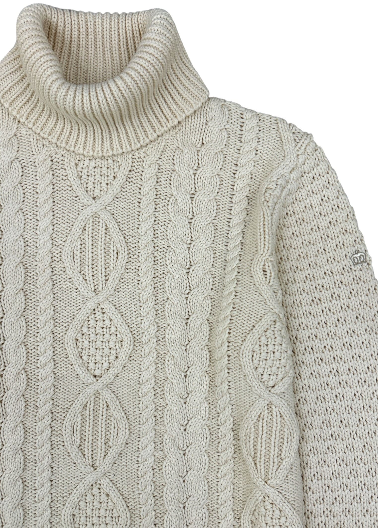 Вдохновлённый рыбацкими свитерами с ирландских Аранских островов конца XIX века и интеллигентной эстетикой битников, «Галакси» — безупречный винтажный образец британского херитейдж-стиля, в котором утилитарная основа сочетается с продуманной мод-элегантностью, адаптированной под современный контекст. Мы сохранили оригинальный аранский орнамент из ромбов и кос — каждый со своим символическим значением, — а также характерную крупную рельефную вязку и высокий двойной воротник, надёжно защищавшие моряков и портовых рабочих от ветра и брызг. В качестве основного материала выбран мягкий хлопок в оттенке натурального экрю, благодаря чему изделие стало менее колючим, более практичным и комфортным для повседневной носки. Добавление мериносовой шерсти, отсылающее к историческим прототипам, обеспечивает дополнительное тепло и придаёт модели премиальное звучание. Завершающим штрихом служит наш культовый логотип Корона, тщательно вышитый на рукаве. Galaxy — воплощение универсального зимнего гардероба, где практичность сочетается с безупречным чувством меры: носите его с классическими брюками и брогами для образа в духе contemporary mod или под бушлат и Харрингтон, чтобы подчеркнуть уверенность и характер. [Цвет производителя — ecu marl]