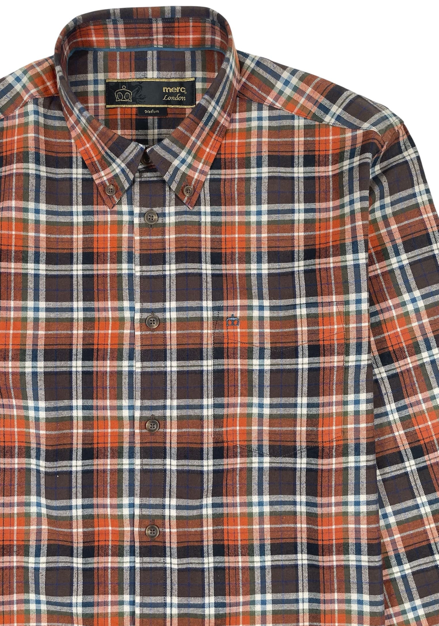 Современное прочтение классической рабочей одежды шотландского побережья XIX века, «Фидлер» выполнена из хлопковой фланели твилового переплетения. Благородный клетчатый узор в тёплых оттенках коричневого, терракоты и зелени отсылает к традиционным тартанам рыбаков и рабочих северных прибрежных районов. Этот рисунок сохранит стойкость и насыщенность даже после многократных стирок благодаря технологии пряжеокрашивания (yarn-dyed), при которой окрашивается не готовое полотно, а в отдельности каждая нить, за счет чего ткань приобретает естественную глубину цвета и еще более выразительную фактуру. Поверхность с лёгким начёсом делает материал мягким и тёплым, при этом он остаётся воздухопроницаемым и комфортным для ежедневного ношения. Фирменный воротник button-down, кокетка, бантовая складка и петля на спинке продолжают наследие практичных спортивных рубашек из истории Ivy League. Вышитый логотип Корона на нагрудном кармане подчёркивает внимание к деталям и преемственность. Носить Fiddler как оверширт поверх футболки или добавьте сюда толстовязанный кардиган и Харрингтон в духе скинхед-гардероба — это идеальная вещь для многослойности, сочетающая функциональность и характер британского стиля херитейдж. [Цвет производителя — brown]
