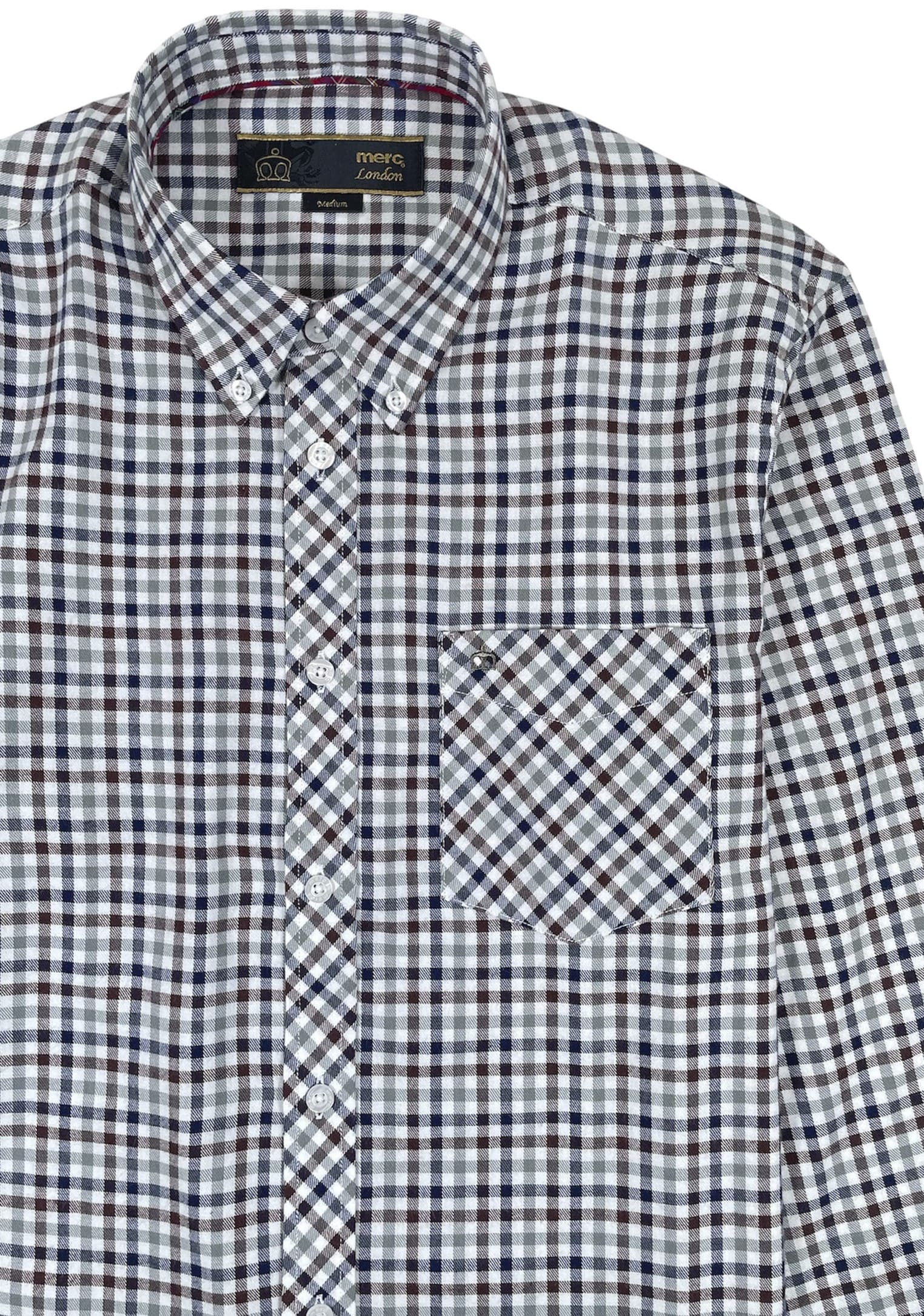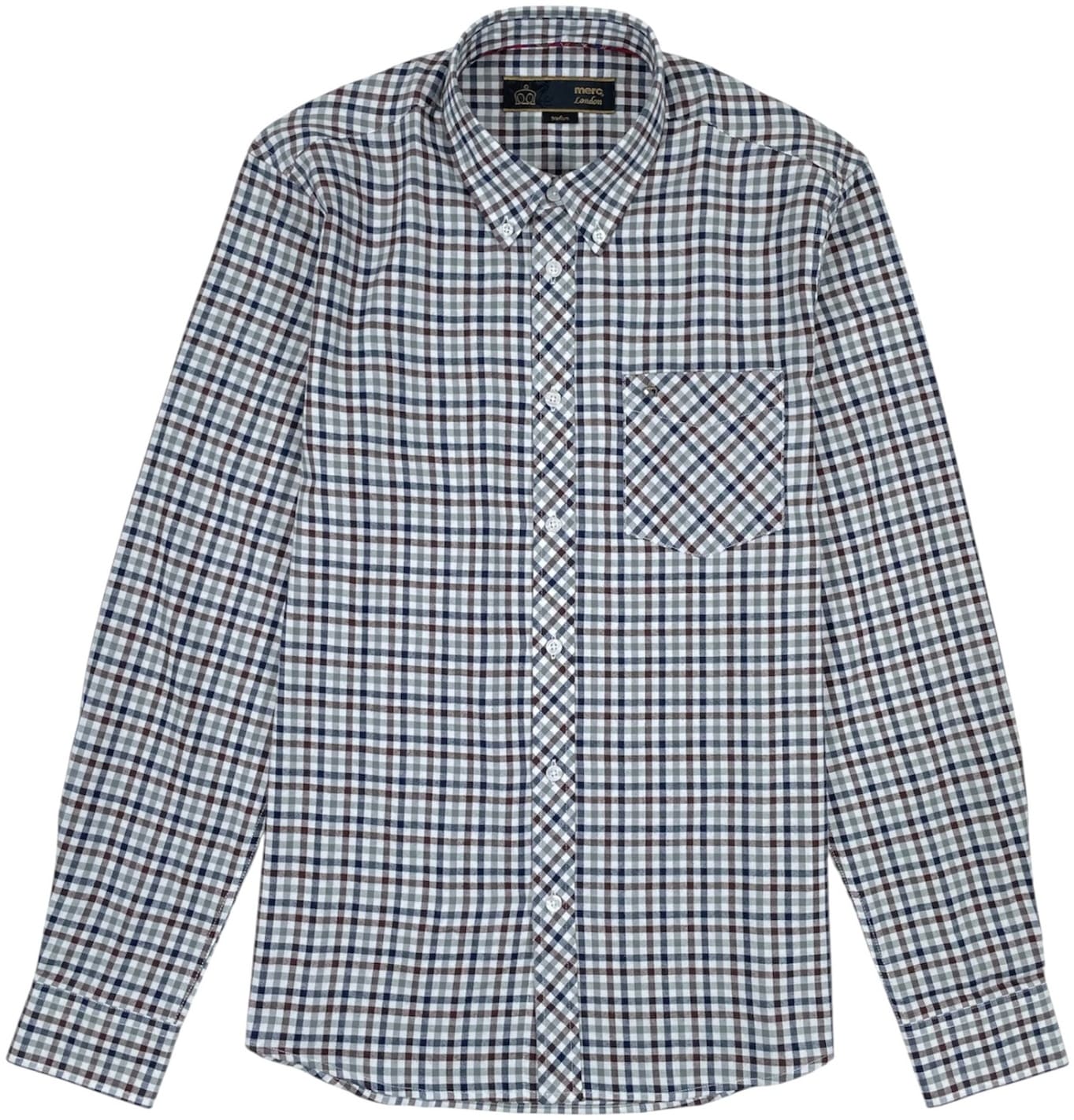 Абсолютная классика английской клетки в духе бутиков на Карнаби-стрит и мод-гардероба второй половины прошлого века, «Гринвич» выполнена из мягкого хлопкового твила с лёгким односторонним начёсом. Бархатистая ткань средней плотности сочетает комфорт и структуру, оставаясь приятной на ощупь, и хорошо держа форму в течение дня. Кэжуальный узор в клетку gingham сдержанных синего, серого и коричневого оттенков придаёт модели строгий, но не слишком официальный характер, свойственный повседневному британскому стилю. Клетка гинем веками ассоциируется с практичностью и безупречным вкусом — от рабочих рубашек английских мастерских до университетского преппи. Узор сохранит стойкость и насыщенность благодаря технологии пряжеокрашивания (yarn-dyed), при которой окрашивается не готовое полотно, а в отдельности каждая нить, за счет чего материал приобретает естественную глубину цвета и выразительную фактуру. Фирменный воротник button-down высотой в три пальца, кокетка, бантовая складка и петля на спинке отсылают к эстетике Ivy League, соединяя английские традиции и американский функционализм. Диагонально кроеный карман с аккуратной вышивкой логотипа Корона завершает образ, подчеркивая внимание к деталям. Фигурный низ со слегка удлинённой спинкой создает плавный силуэт и позволяет носить рубашку как заправленной, так и навыпуск. Комбинируйте Greenwich с твидовым пиджаком и брогами или сочетайте ее с кардиганом и курткой Харрингтон — этот универсальный, истинно лондонский дизайн станет ключом к любому образу.