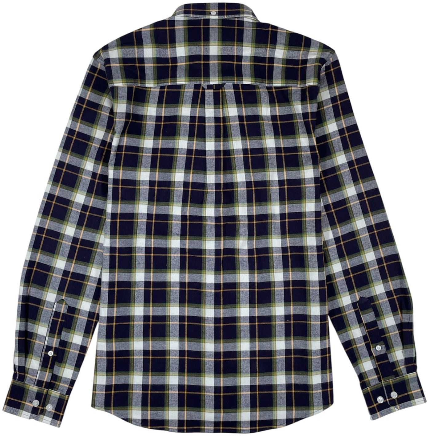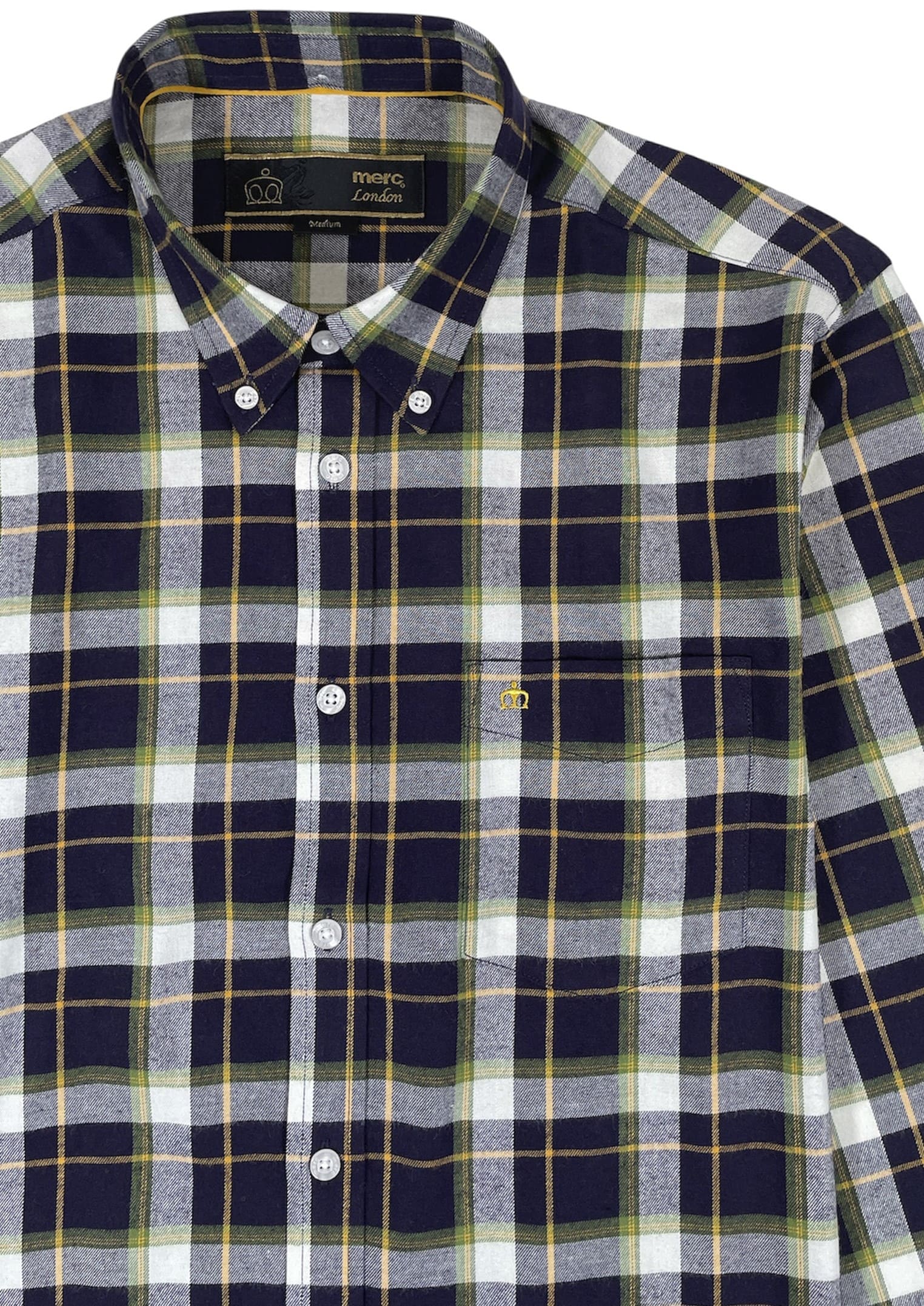Сдержанная и благородная, «Портман» проникает в саму суть английской кэжуал-классики — стиля, родившегося на границе между городской элегантностью и жизнью загородных поместий от Йоркшира до Корнуолла с их туманами, твидом и верховой ездой. Модель выполнена из плотного хлопкового твила без начёса — гладкой, структурной ткани, отличающейся прочностью и устойчивой к деформации. Диагональное переплетение придаёт ткани фактуру и лёгкий благородный блеск, а пряжеокрашенные нити (yarn-dyed) обеспечивают стойкость цвета и глубину тонов. Крупная клетка в оттенках оливы, тёмного индиго и тёплой охры объединяет практичность и естественность, напоминая атмосферу викторианской Англии со страниц Диккенса и Конан Дойла. Фирменный воротник button-down высотой в три пальца, кокетка, бантовая складка и петля для шкафчика на спинке отсылают к спортивным традициям Ivy League, а вышитый логотип Корона на кармане подчеркивает аутентичность и внимание к деталям. Образ дополняют функциональные детали: плавный фигурный низ со слегка удлинённой спинкой, позволяющий носить рубашку как заправленной, так и навыпуск, и манжеты с выточкой, чтобы было удобно надевать её при застёгнутых пуговицах. Носите Portman с вельветом, шерстяным кардиганом или паркой — это универсальная рубашка для тех, кто ценит комфорт, точность настроения и британскую эстетику. [Цвет производителя — dark brown]