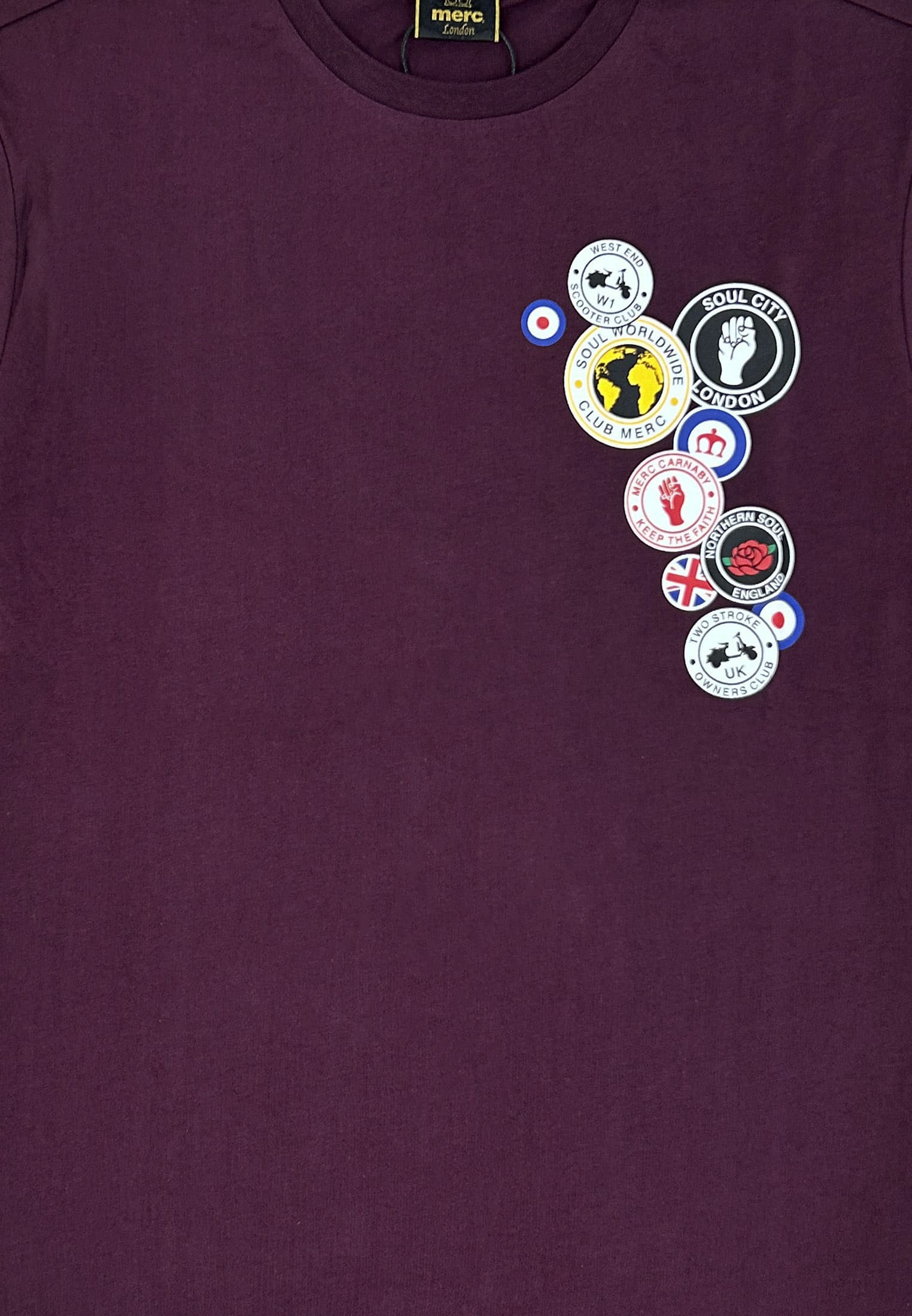 Покажите свою сущность и Храните веру вместе с хлопковой футболкой благородного бордового оттенка «Нонтон» — нашим потрясающим трибьютом британским субкультурам и их любви украшать свои вещи нашивками и значками. От модов до соул-боев и скутеристов — ваше наследие живо и передается от поколения к поколению. [Цвет производителя — wine]
