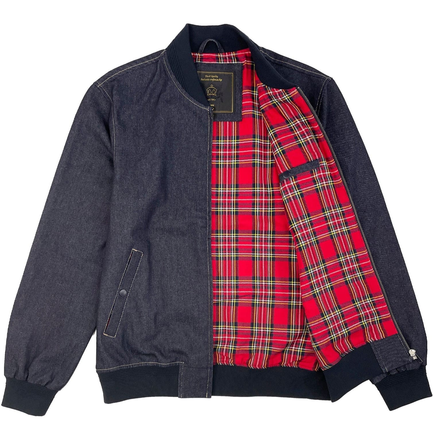 Свежий взгляд на классический силуэт, неразрывно связанный с историей субкультур и нашим британским наследием, «Энтони» сочетает стиль рабочих окраин с фирменным качеством и изысканными деталями. Универсальный 12-унцовый деним благородного темно-синего оттенка с примесью вискозы и спандекса для мягкости и повышенной эластичности, оригинальная ребристая текстура на трикотажном воротнике, манжетах и резинке снизу, контрастные швы, брендированная фурнитура, наша культовая подкладка Royal Stuart и, наконец, изящный лого, тщательно вышитый на груди золотистыми нитями, — эта вещь создана, чтобы служить долго и выделяться.