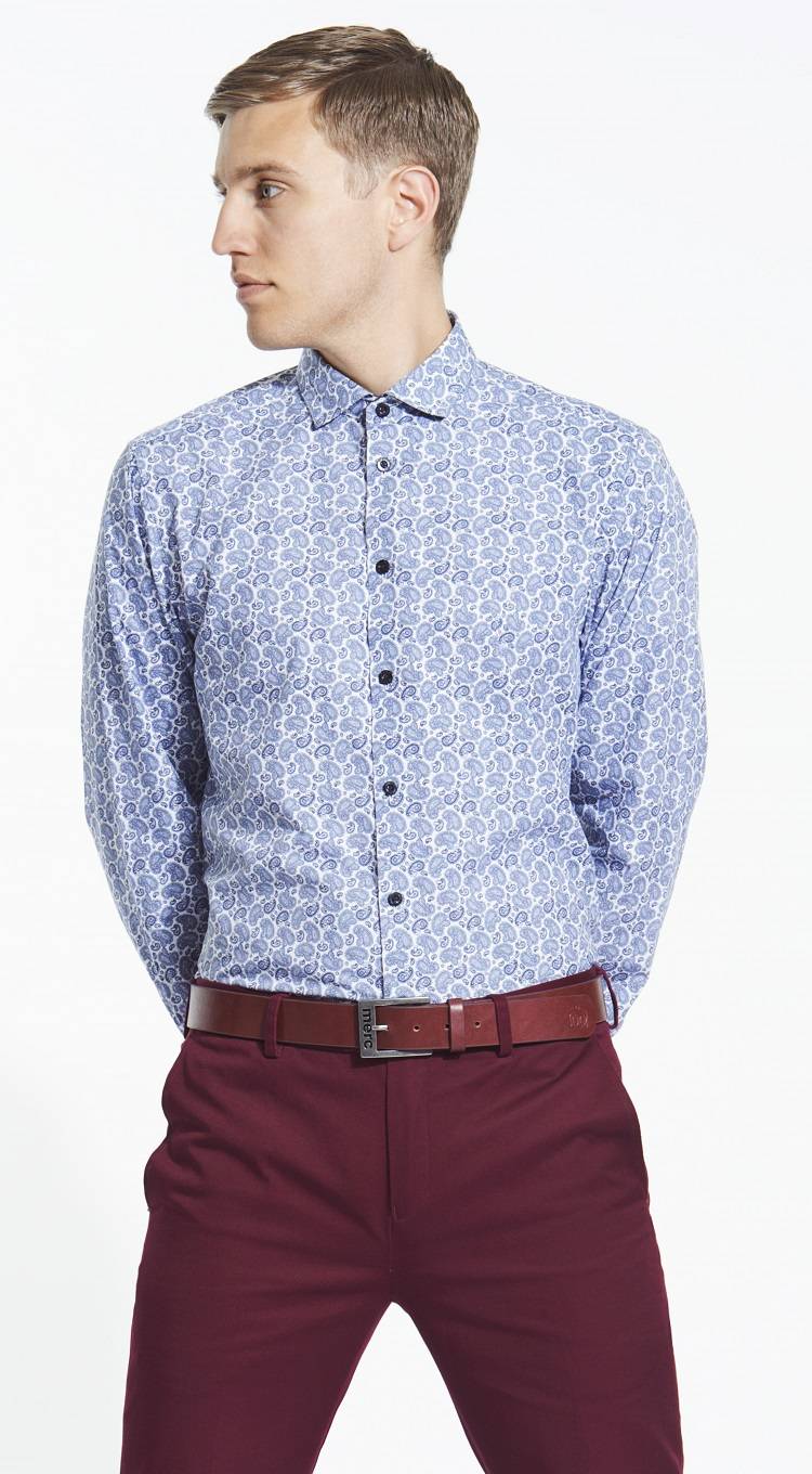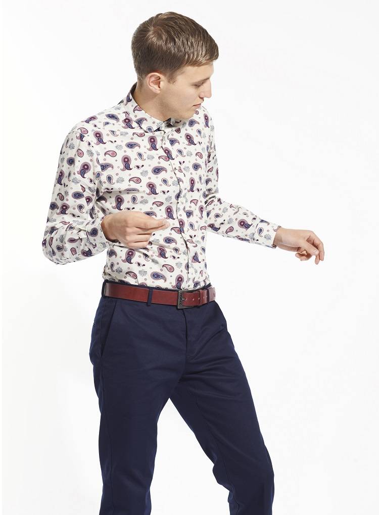 Неразрывно связанный своим корнями с эпохой «Swinging Sixties» и субкультурой Модов, Merc уже почти полвека использует пейсли в производстве своих рубашек, галстуков и поло. Приталенные рубашки пейсли стали визитной карточкой бренда и неизменно выдвинуты на передний план коллекций, становясь хитом из сезона в сезон. Пейсли для Merc – это не просто красивый принт, а часть истории бренда и его наследия. Пейсли хорошо подходит для торжественного гардероба, однако он также может придать лоск и деловому или повседневному наряду, не будучи при этом вычурным или избыточным. В нашем магазине вы всегда можете купить приталенные рубашки пейсли в различных вариациях.