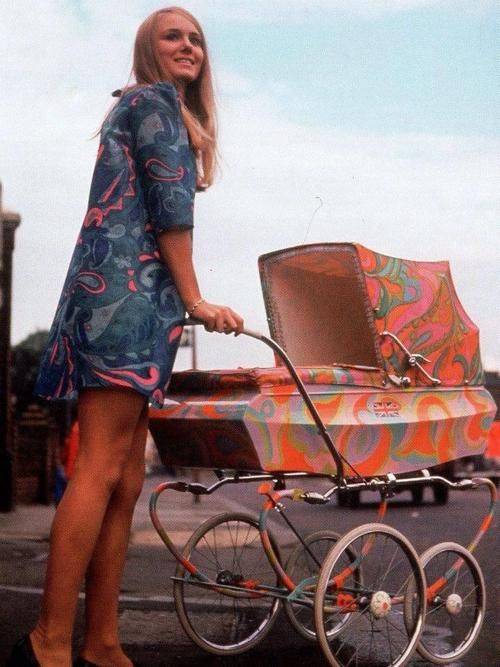 Британская модель Никки Хант в коротком платье с узором пейсли, 1967. Источник |